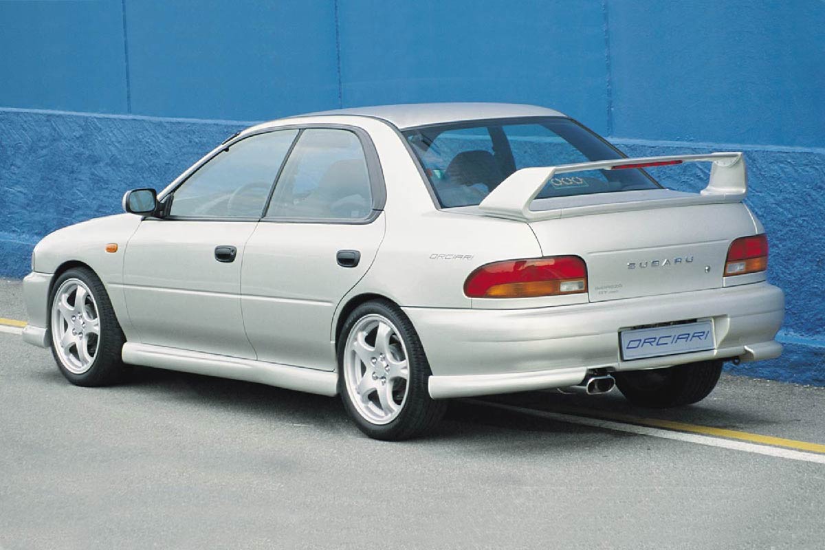 Kit estetico Orciari composto da: spoiler sotto paraurti anteriore, mascherina anteriore, copri fendinebbia, prese aria cofano, cantonali paraurti posteriore, coppia minigonne e alettone posteriore (accessori originali Subaru)